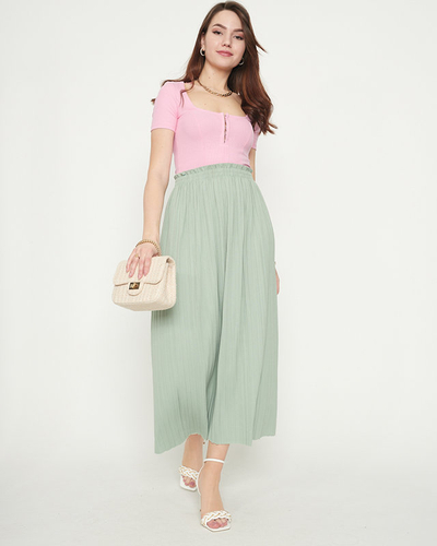 - Fusta lungă clasică plisată de damă în culori elegante de primăvară. Modelul este confecționat dintr-o țesătură cu conținut ridicat de bumbac, are o talie elastică largă. Baza perfectă pentru multe look-uri de zi cu zi! NOTĂ: Precizia măsurătorii (+/-) 1