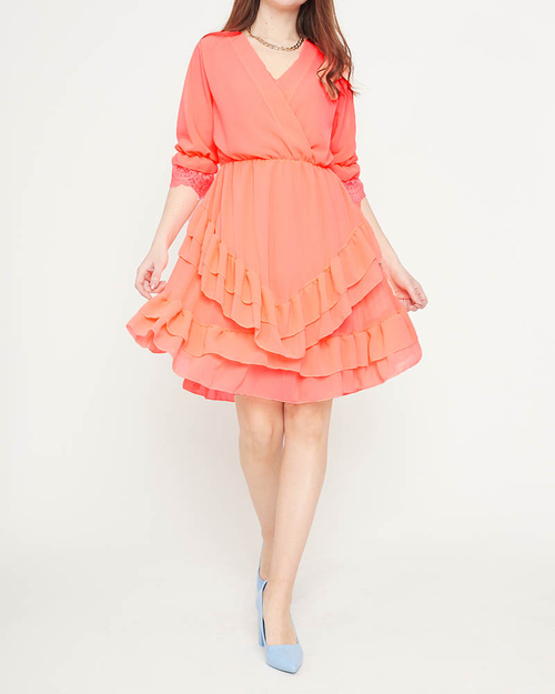 - Rochie mini dama fantastica. Modelul cu decolteu in V are maneci 3/4 finisate cu dantela. Rochie lejera de vara decorata cu volane, are captuseala si banda elastica cusuta in talie. NOTĂ: Precizia măsurătorii (+/-) 1 cm.
