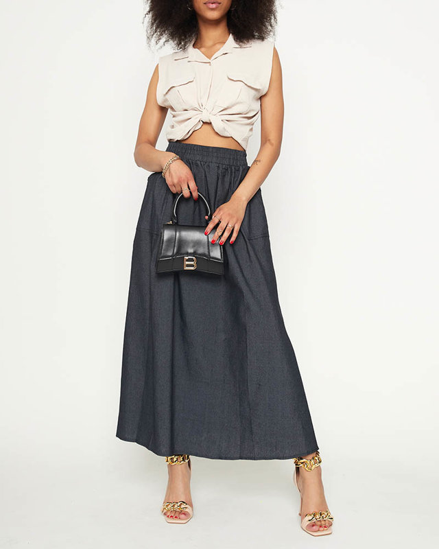 Fusta lungă neagră de damă cu buzunare - Îmbrăcăminte