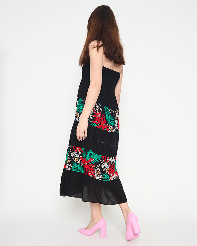 Rochie midi neagră cu flori de damă - Îmbrăcăminte