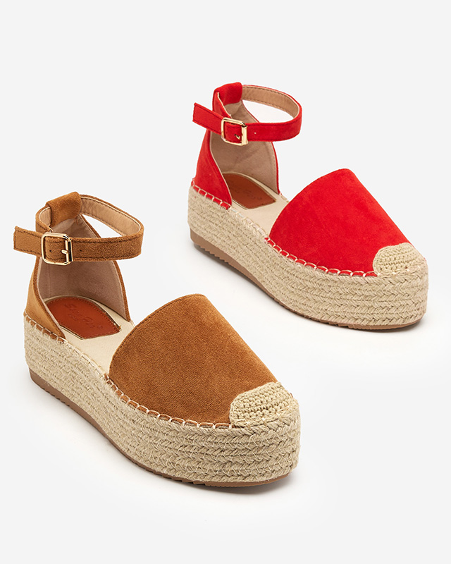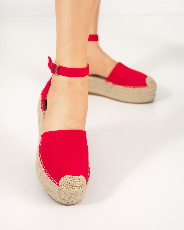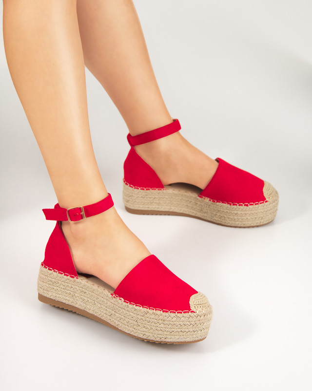 Sandale roșii de damă a'la espadrile pe platformă Indira - Încălțăminte