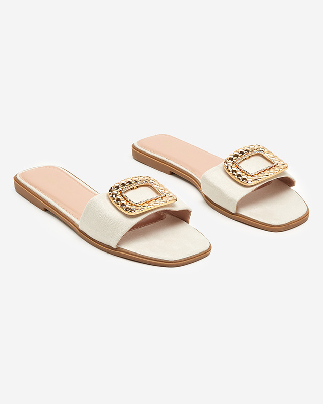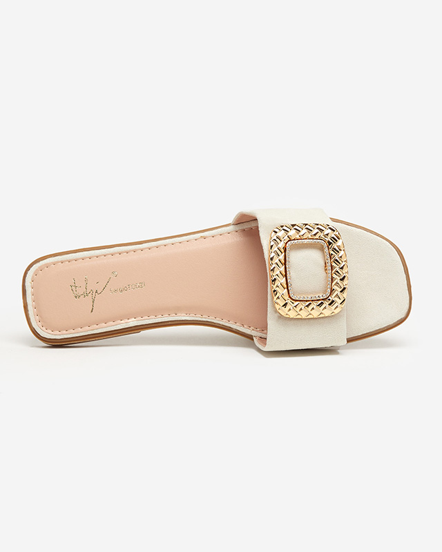 Papuci dama bej din piele intoarsa ecologica cu catarama aurie Lozi - Incaltaminte