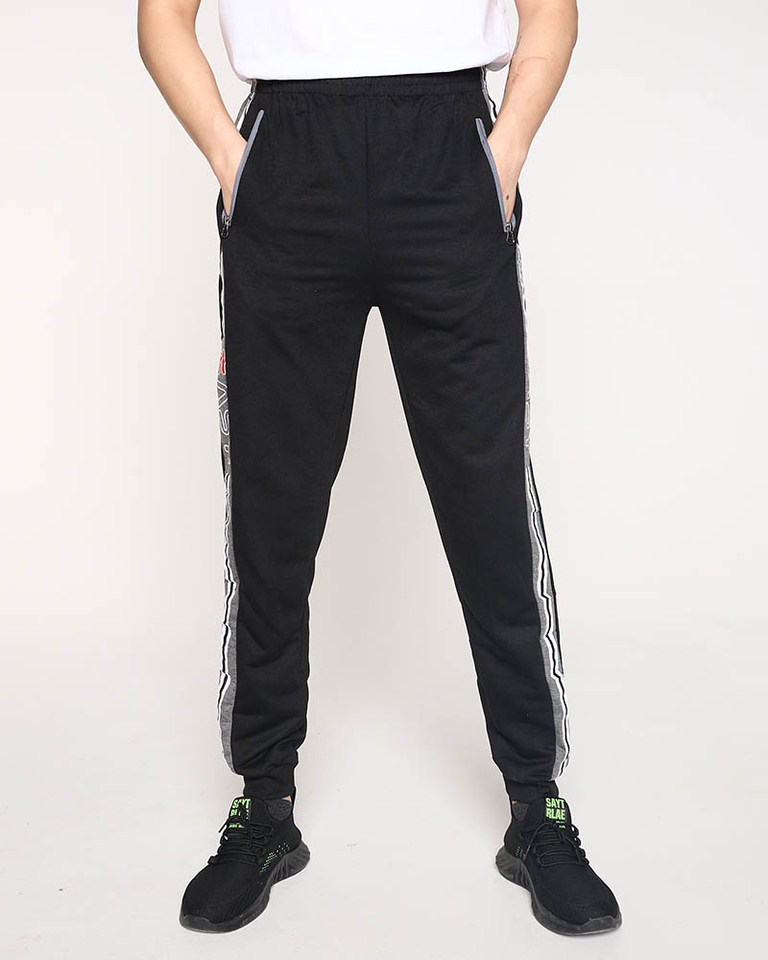 Pantaloni de trening negri pentru bărbați cu inscripții - Îmbrăcăminte