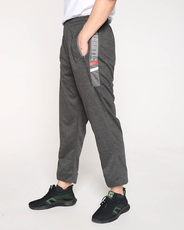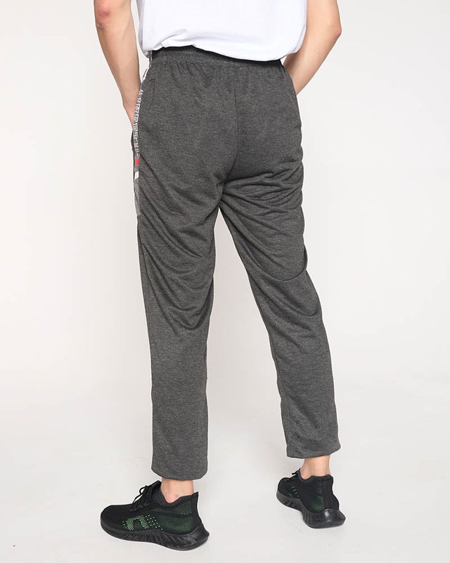 Pantaloni de trening pentru bărbați gri închis cu inscripții - Îmbrăcăminte