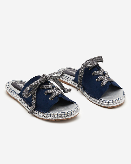 OUTLET Papuci de damă bleumarin și argintiu cu o legătură Wiazoni - încălțăminte