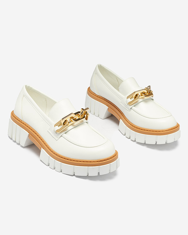 Pantofi de dama albi cu adaos auriu Plirose - Incaltaminte