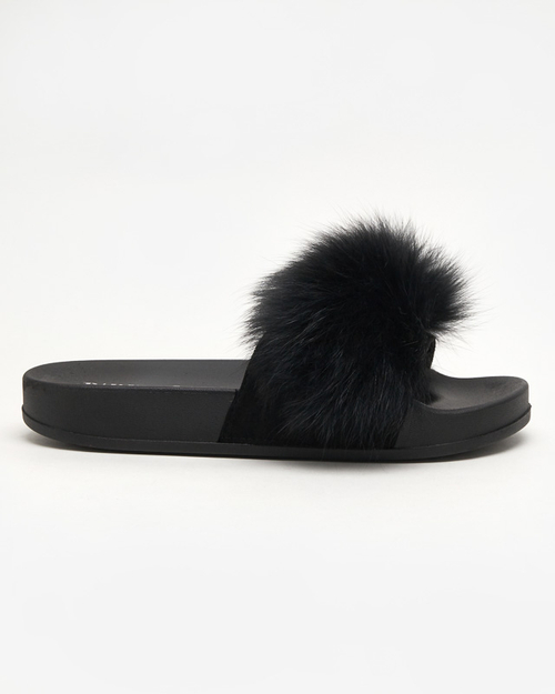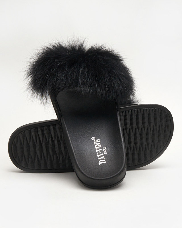 OUTLET Papuci negri cu blana Nate - Incaltaminte