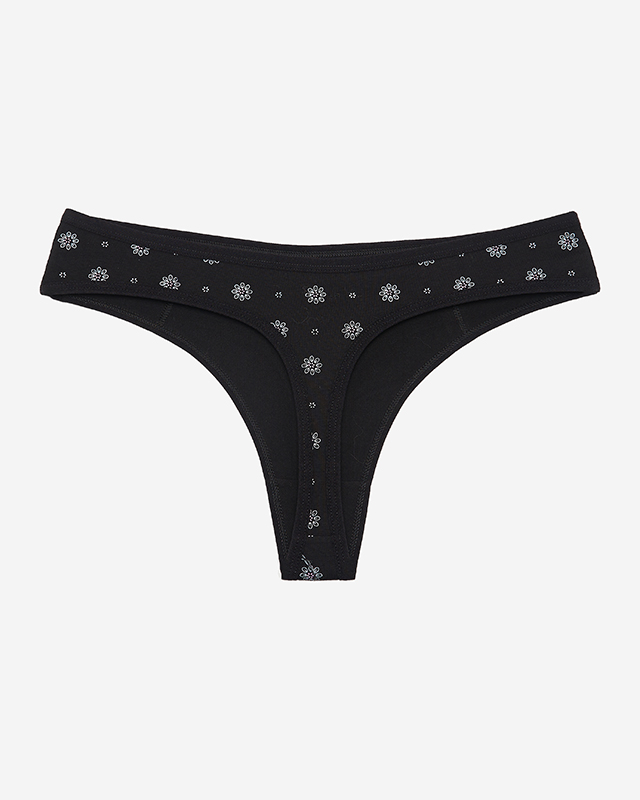 Tanga de dama neagra din bumbac cu flori - Lenjerie intima