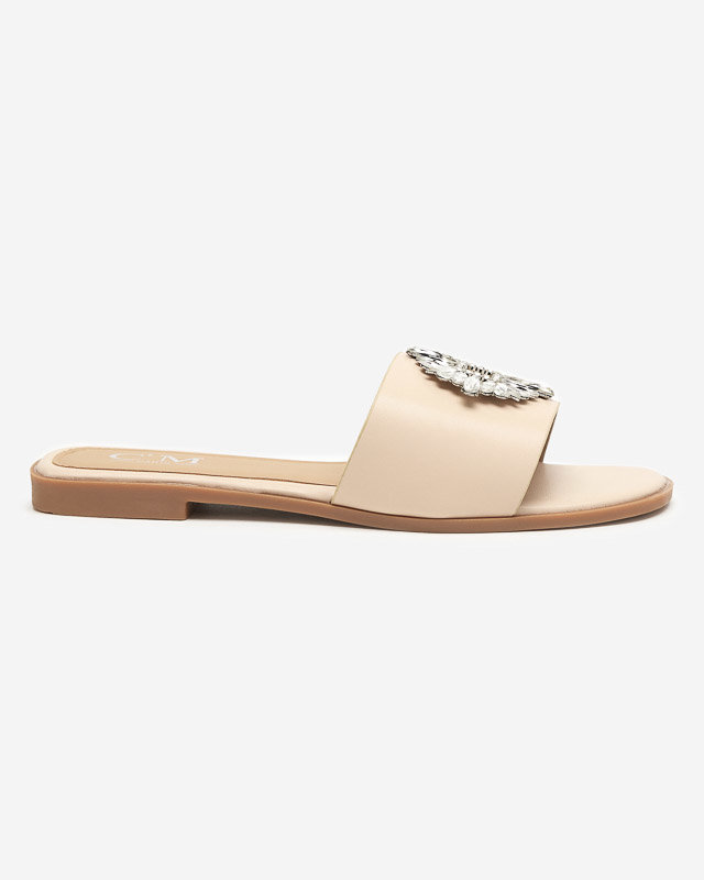 OUTLET Papuci de dama bej cu ornament argintiu. Hipi - Încălțăminte