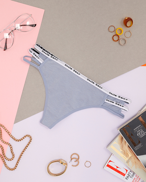 Chiloți tanga de damă albastru din bumbac cu dungi - Lenjerie intimă