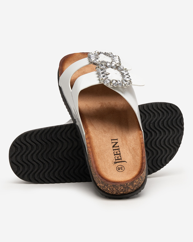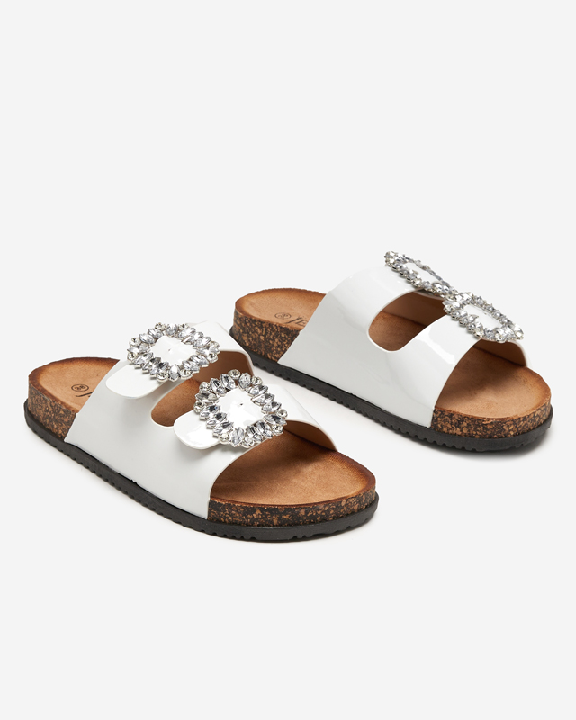OUTLET Papuci dama albi cu agrafe decorate Olimika - Incaltaminte