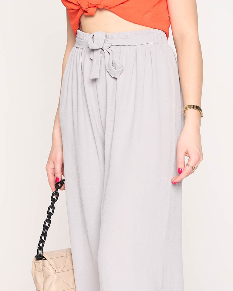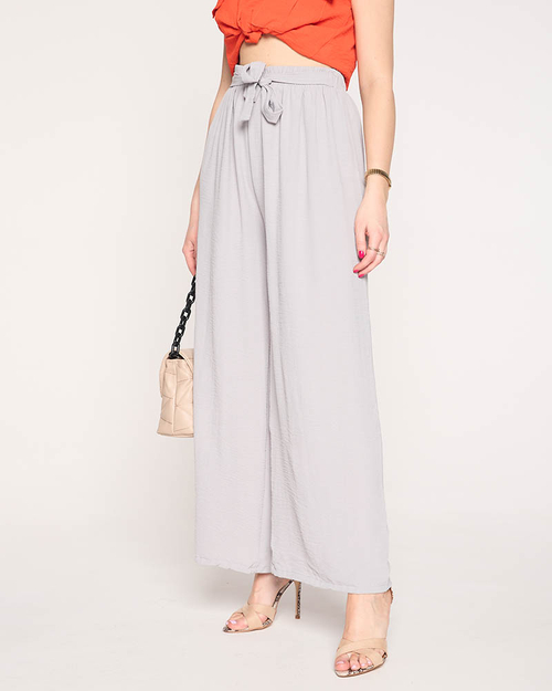 Pantaloni palazzo largi de damă în gri deschis - Îmbrăcăminte