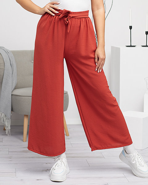Pantaloni roșii palazzo largi de damă - Îmbrăcăminte
