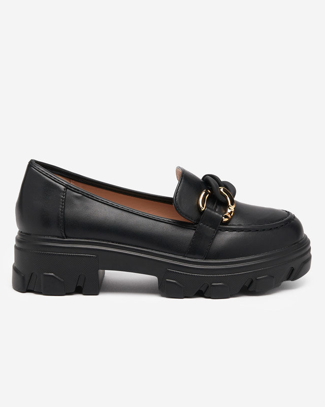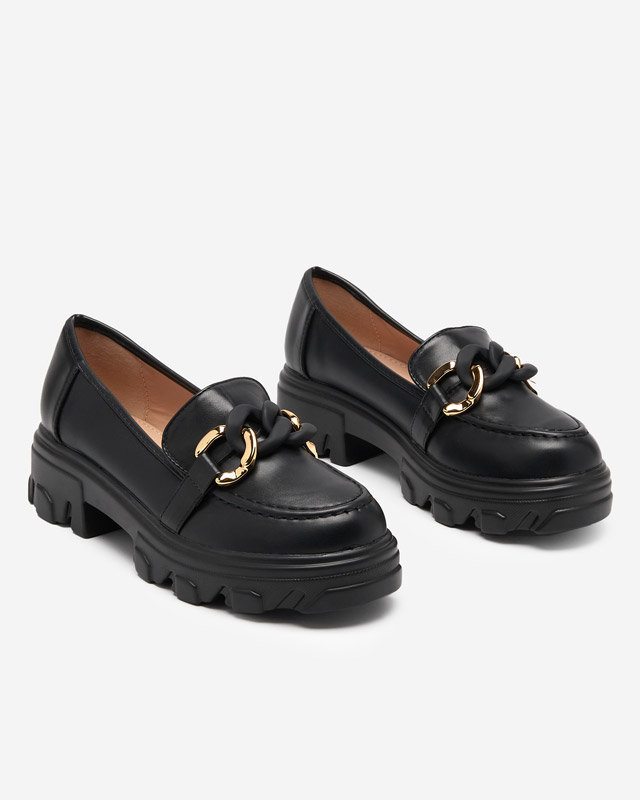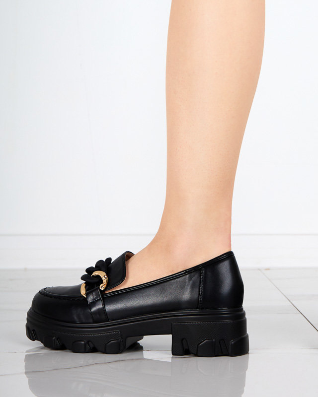 OUTLET Pantofi negri de dama cu talpa groasa cu decor Simero - Incaltaminte