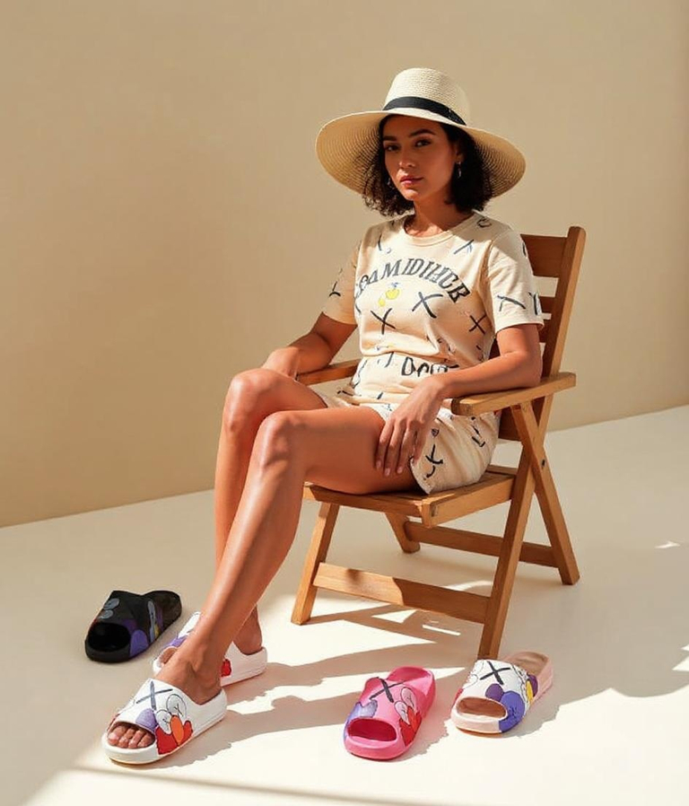- Papuci dama comozi din material cauciucat. Imprimeul interesant adaugă stil!