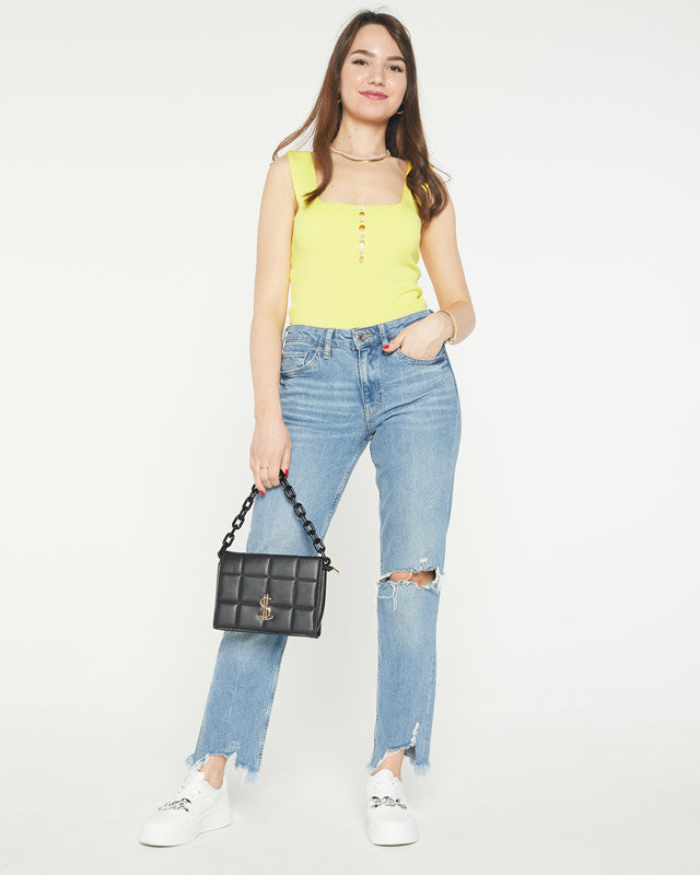 Top de dama galben cu zirconiu cubic a'la nasturi- Imbracaminte