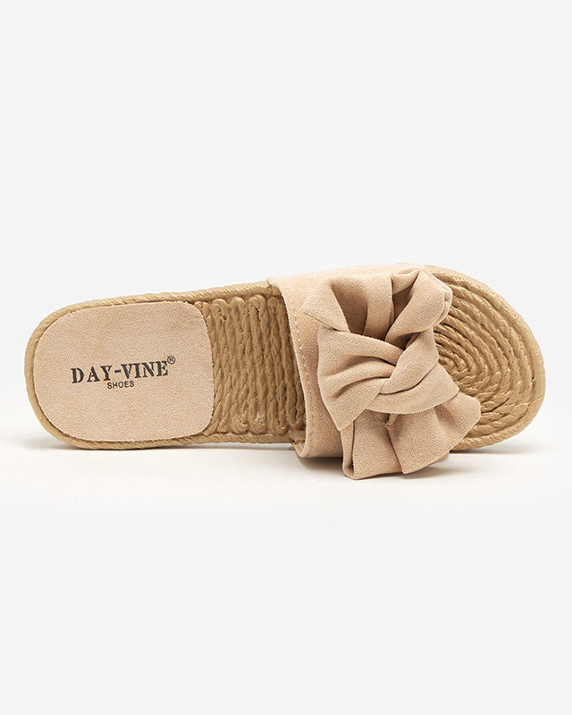 OUTLET Papuci de dama bej cu fundita Terina - Incaltaminte