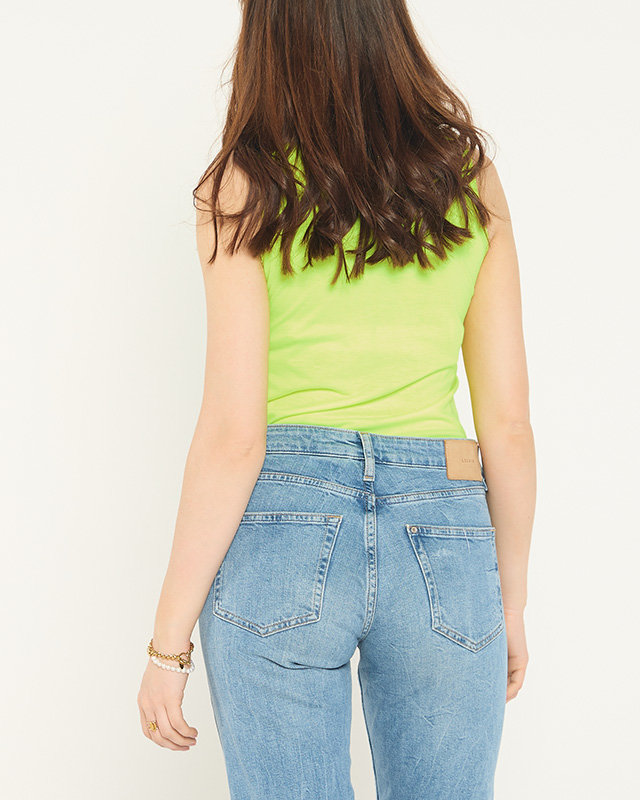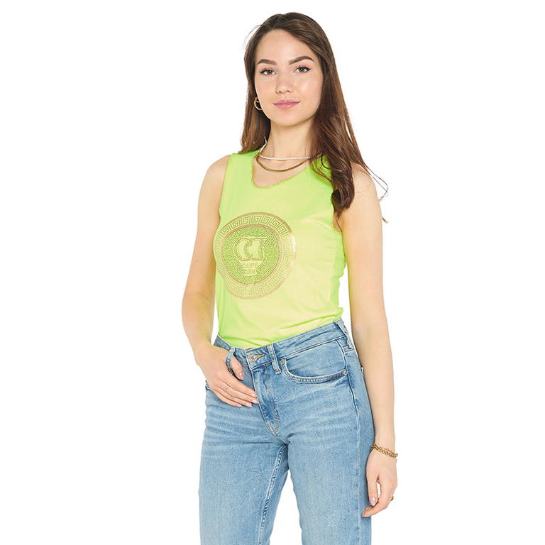 Bluză galbenă neon pe bretele cu imprimeu și zirconiu cubic - Îmbrăcăminte