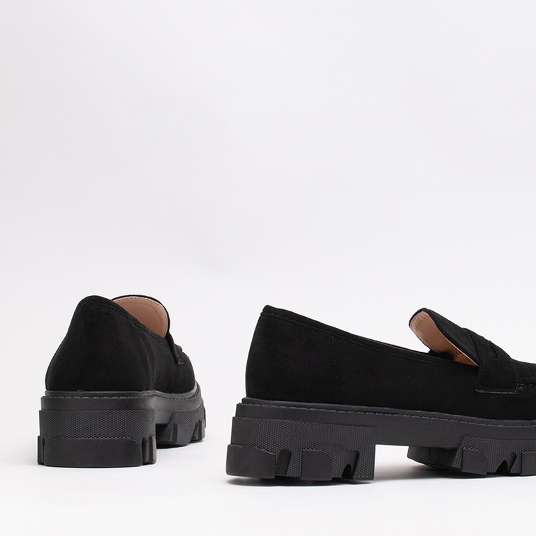 - Pantofi de dama la moda cu talpa groasa, din piele intoarsa eco. Interiorul pantofilor este căptușit cu piele ecologică. Încălțăminte perfectă pentru utilizarea de zi cu zi. Notă: produsul are urme de lipici pe material.