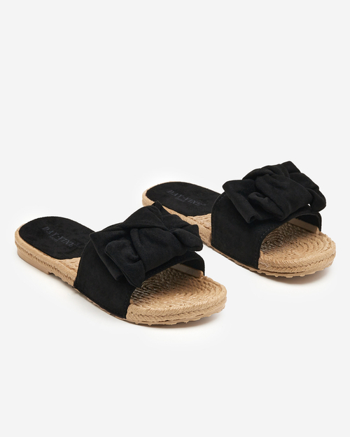 OUTLET Papuci de dama negri cu fundita Terina - Incaltaminte
