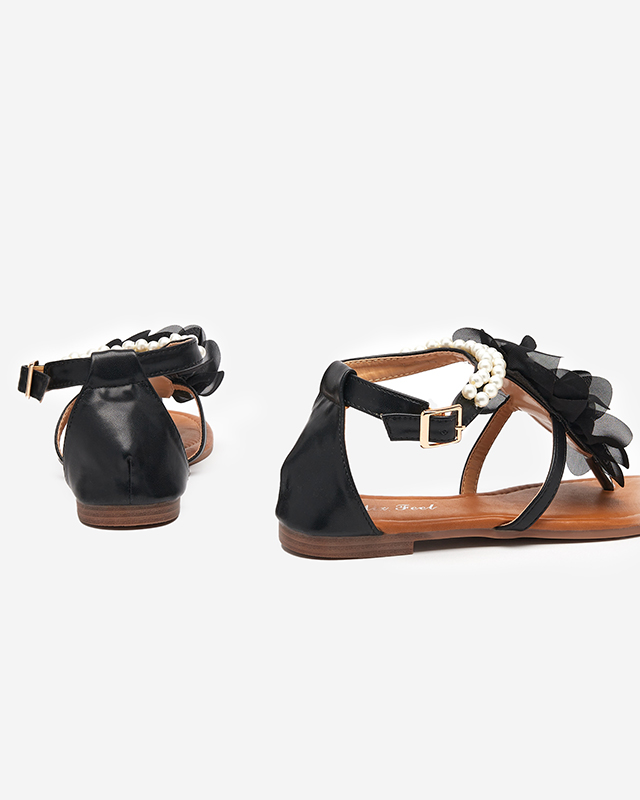 OUTLET Sandale de dama negre cu perle si floare din stofa Amerile - Incaltaminte