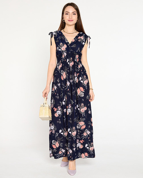 Rochie maxi de dama bleumarin cu flori - Imbracaminte