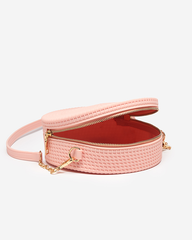 - Geantă rotundă unică pentru femei, realizată din material cauciucat cu relief. Model cu fermoar, în interior un compartiment fără buzunare suplimentare. Este prevăzută cu o curea lungă atașată la un cârlig de prindere, fără posibilitatea de reglare.
