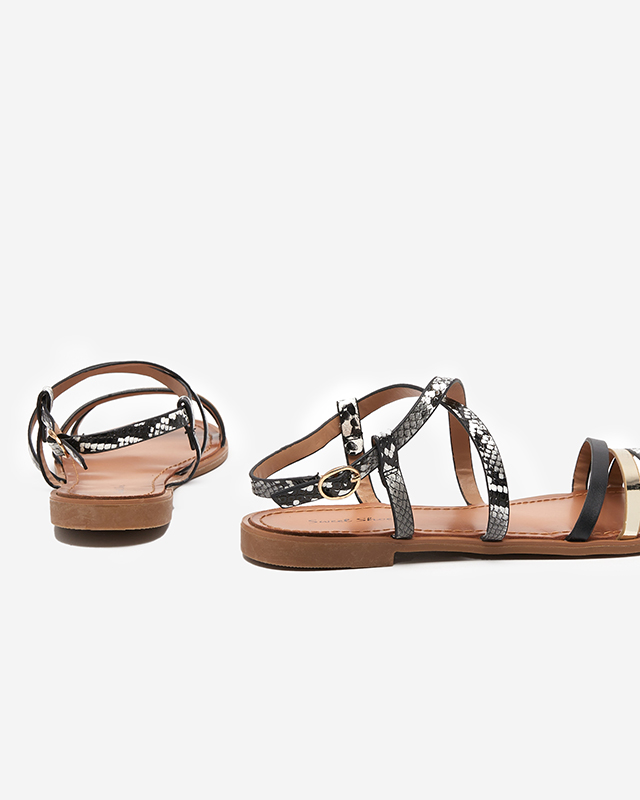 Sandale negre dama a'la piele de sarpe Elione - Incaltaminte