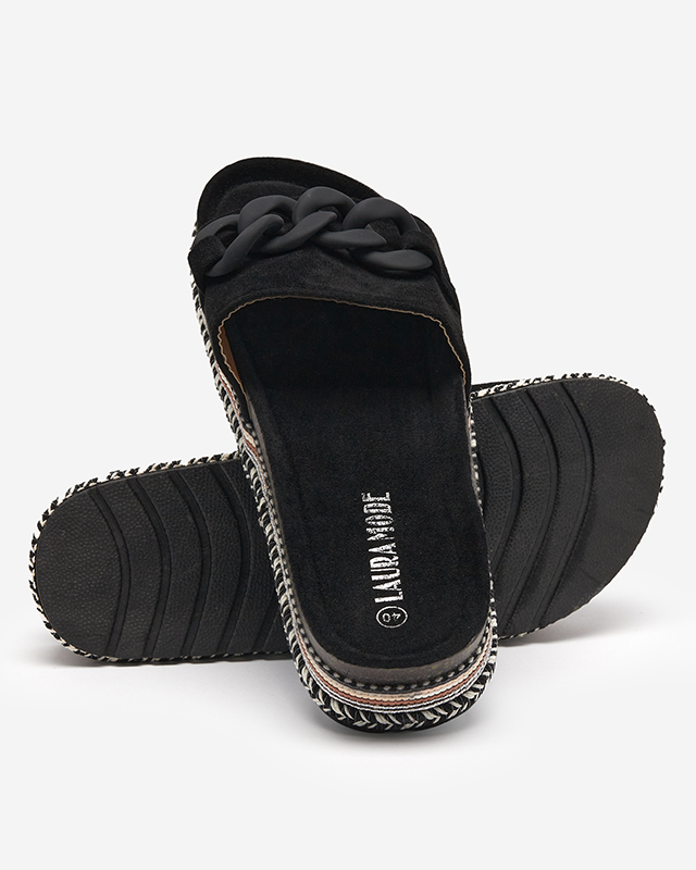 OUTLET Papuci de dama negri cu talpa decorata Hillam - Incaltaminte