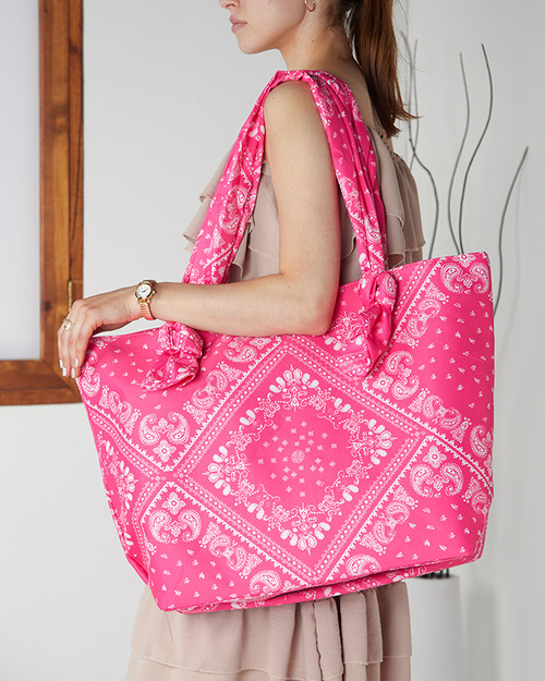 • Geantă elegantă din material textil, cu model paisley. Geanta de mana cu manere legate, cu fermoar, are 1 buzunar in interior. Perfect pentru plaja!