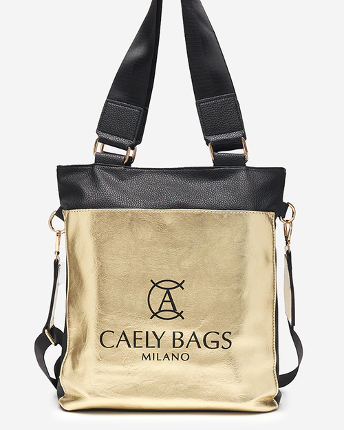Geantă medie de damă din piele ecologică neagră și aurie - Accesorii