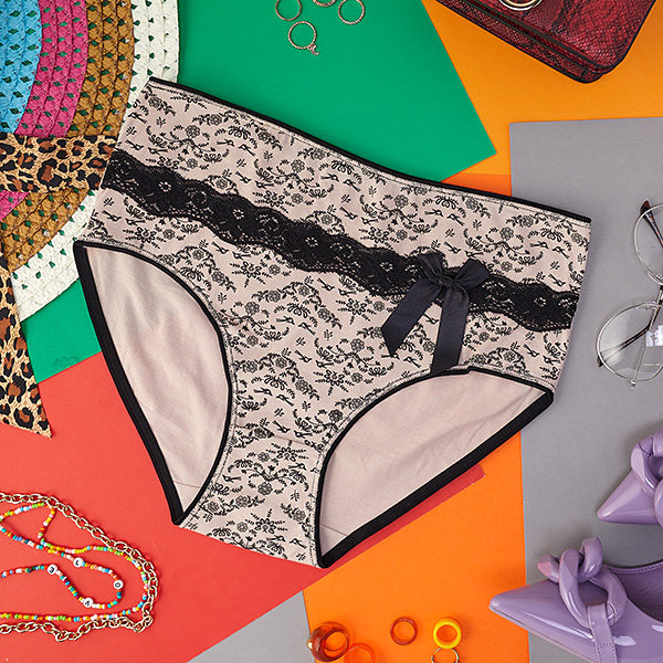 Chiloți de damă cu imprimeu, culoare bej PLUS SIZE- Lenjerie intimă