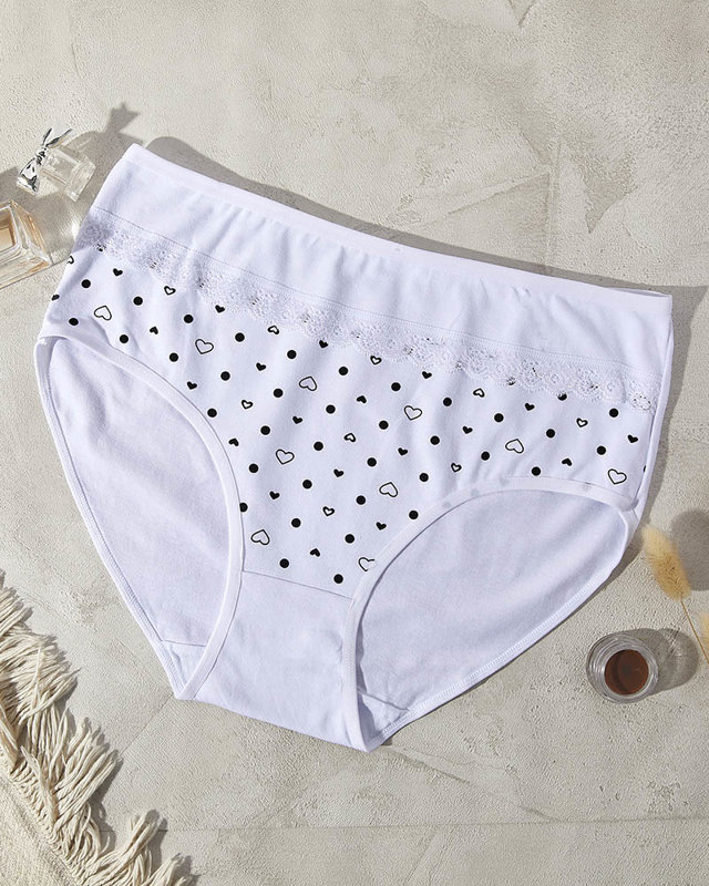 Slip de dama din bumbac alb cu inimioare - Lenjerie intima