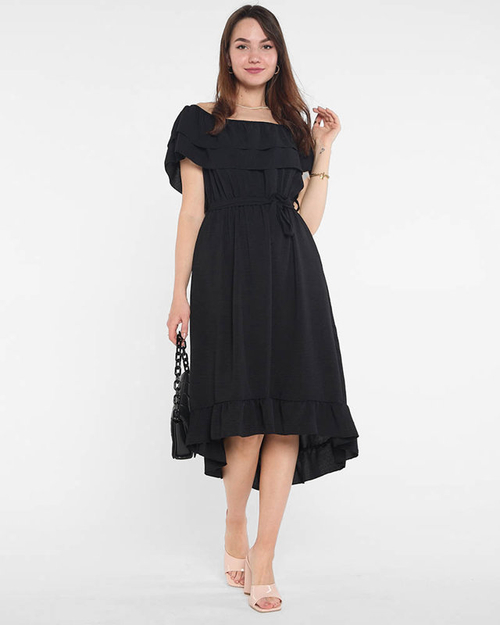 Rochie neagră de damă cu volanuri - Îmbrăcăminte