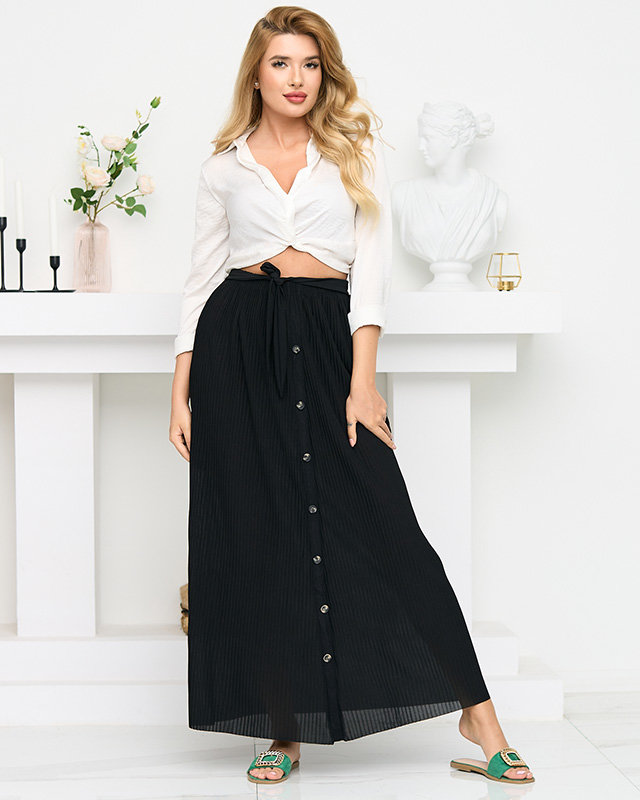 Fusta midi plisată neagră de damă cu nasturi - Încălțăminte