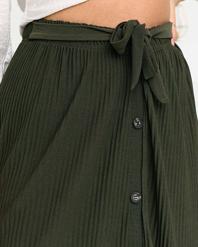Fusta midi plisată verde de damă cu nasturi - Încălțăminte