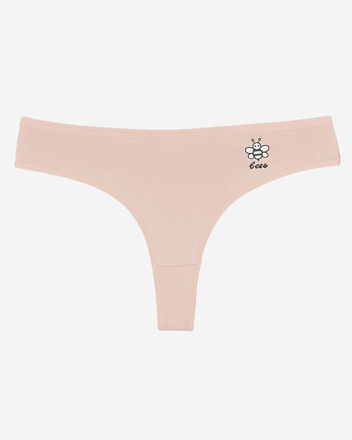 Tanga de dama dintr-o singura culoare din bumbac roz deschis cu imprimeu - Lenjerie intimă