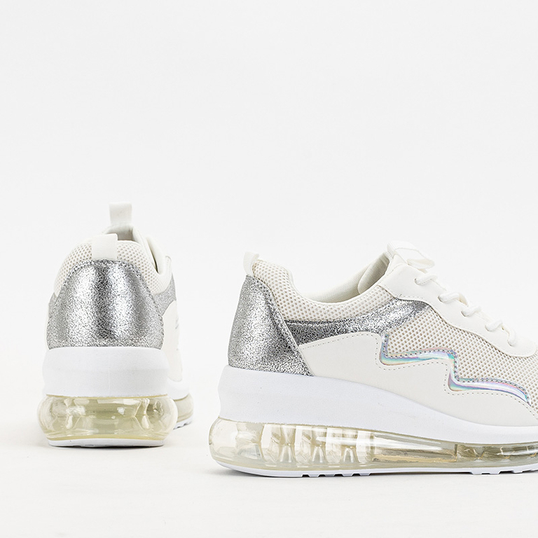 • Pantofi sport eleganti de dama pe toc tip pane, partea superioara este sirelata si realizata dintr-o combinatie de plasa si piele ecologica mat. În interior, o inserție de material textil. Notă: produsul are zgârieturi pe material.