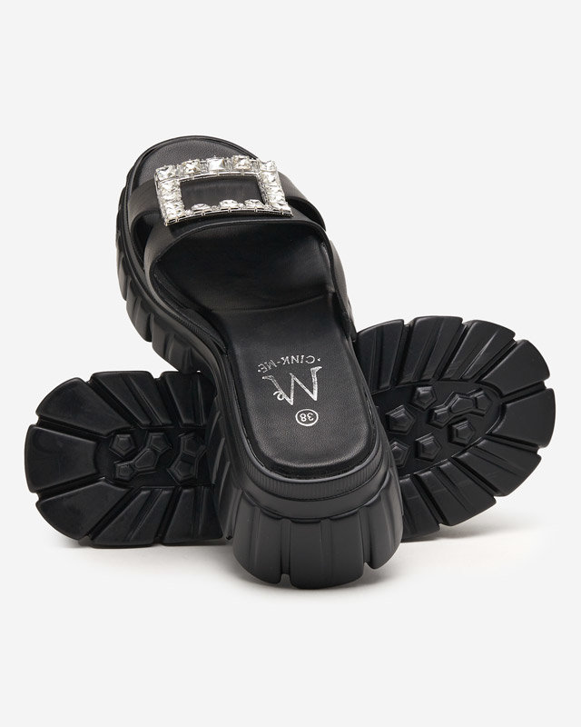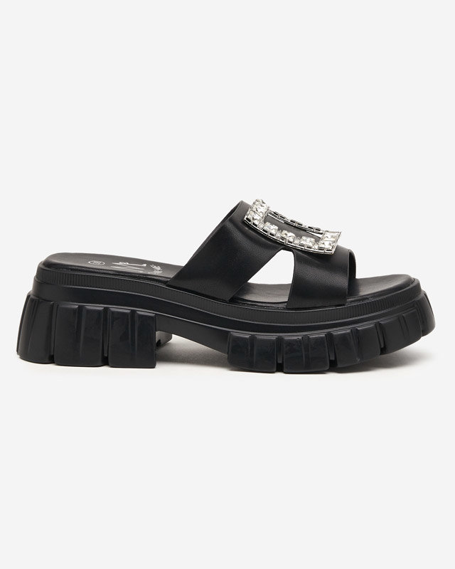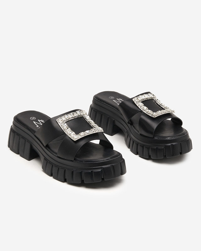 Papuci de damă negri pe talpă masivă cu cristale Vetasi - Încălțăminte