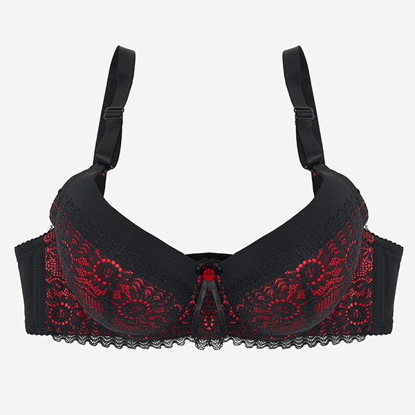 Sutien push-up dama negru si rosu din dantela - Lenjerie