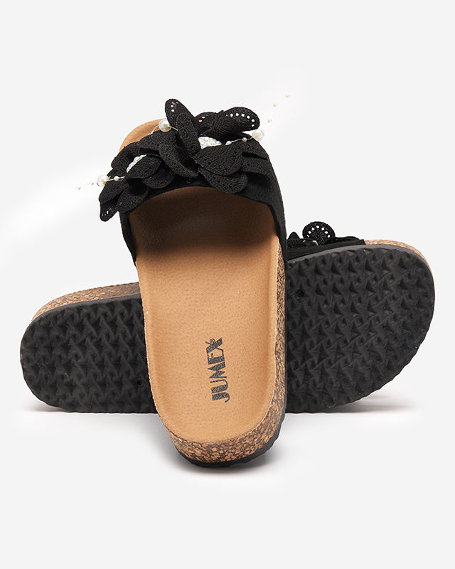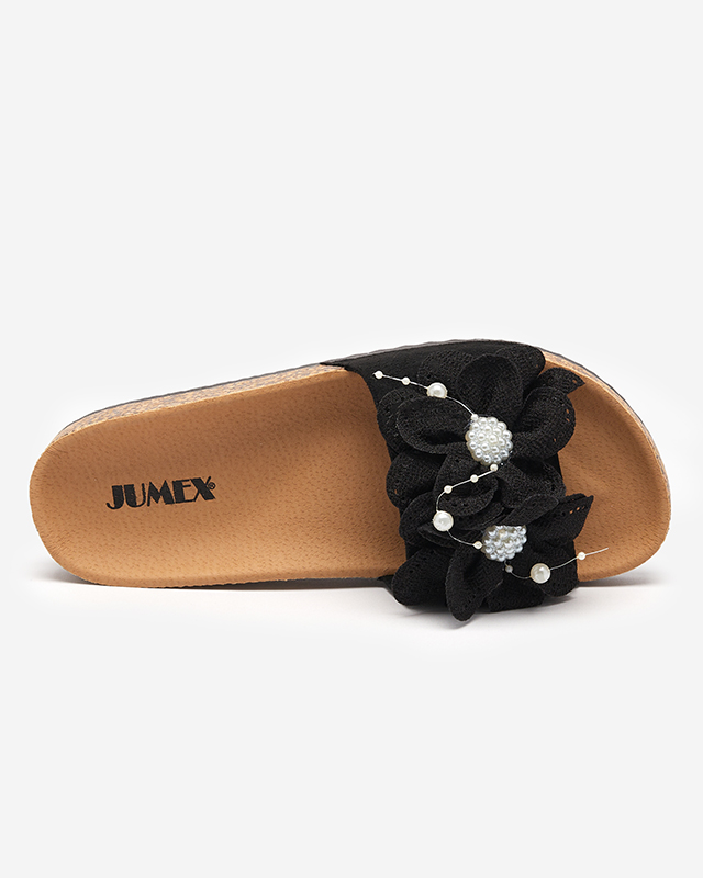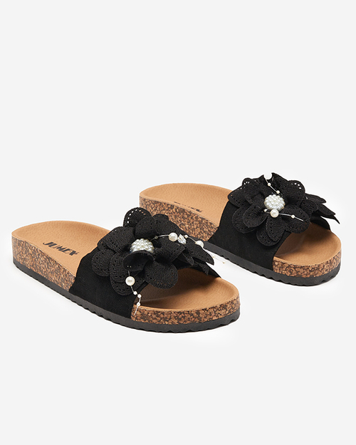 OUTLET Papuci de dama negri cu flori din stofa Serine - Incaltaminte