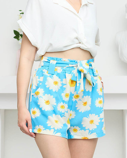 Pantaloni scurți de damă din țesătură cu model albastru floral - Îmbrăcăminte