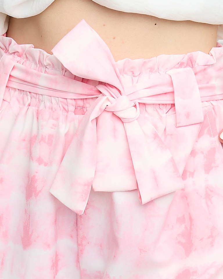 Pantaloni scurți de damă roz din țesătură cu imprimeu - Îmbrăcăminte