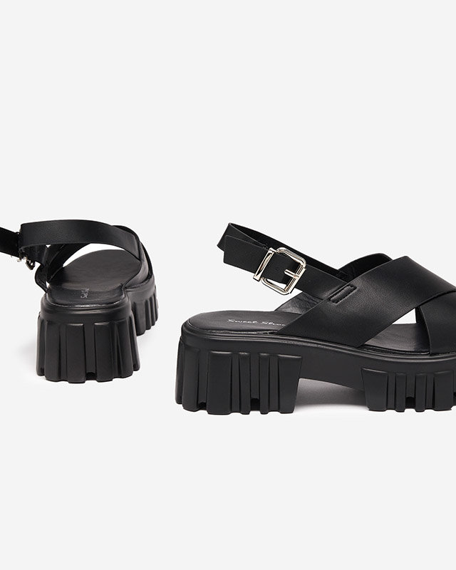 Sandale negre de damă pe talpă masivă Otida - Încălțăminte