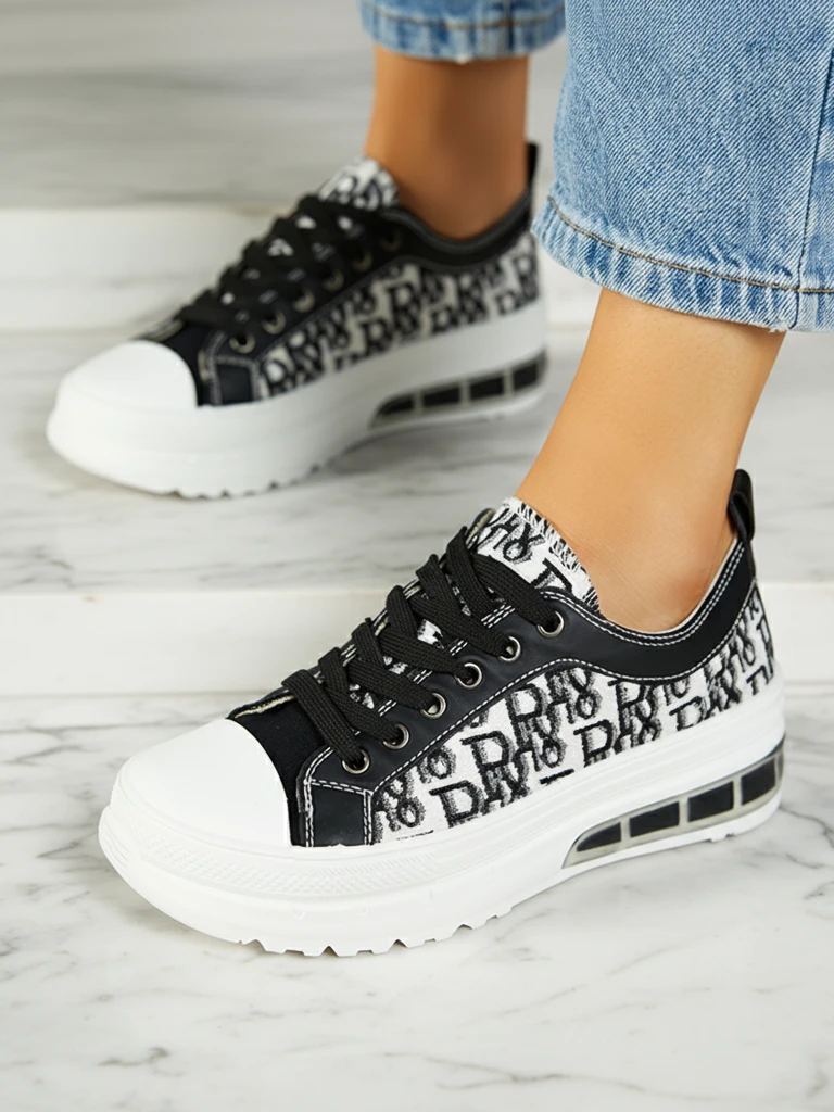 Sneakers Livia în Culoarea Alb-Negru cu Platformă