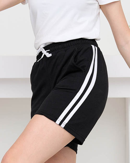 Pantaloni scurți negri cu dungi pentru damă - Îmbrăcăminte