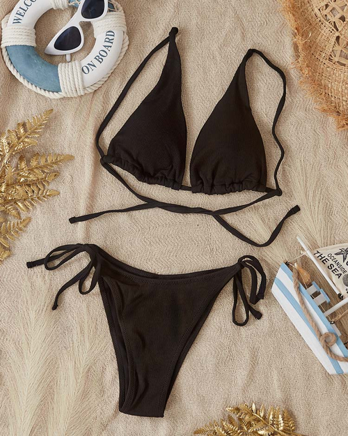 Costum de baie în două piese pentru femei cu nervuri negre - Lenjerie intimă