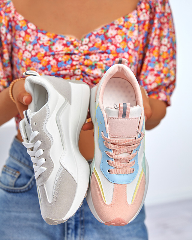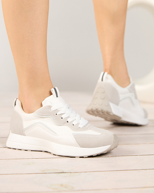 - Pantofi sport clasici de damă cu talpă din cauciuc. Baza perfectă pentru fiecare zi! Partea superioară este realizată dintr-o combinație de piele ecologică, nubuc ecologic și țesătură, iar în mijloc o inserție de material textil. Un must have în garderoba