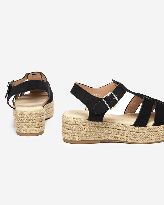 Sandale de dama din piele ecologica neagra pe platforma Keniso - Incaltaminte