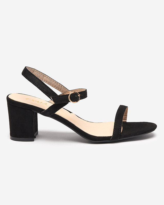 - Sandale de damă clasice pe stâlp stabil, din piele ecologică de piele de căprioară. Modelul se inchide cu catarama, are in interior o insertie din piele ecologica. O completare grozavă pentru rochiile și fustele tale!
